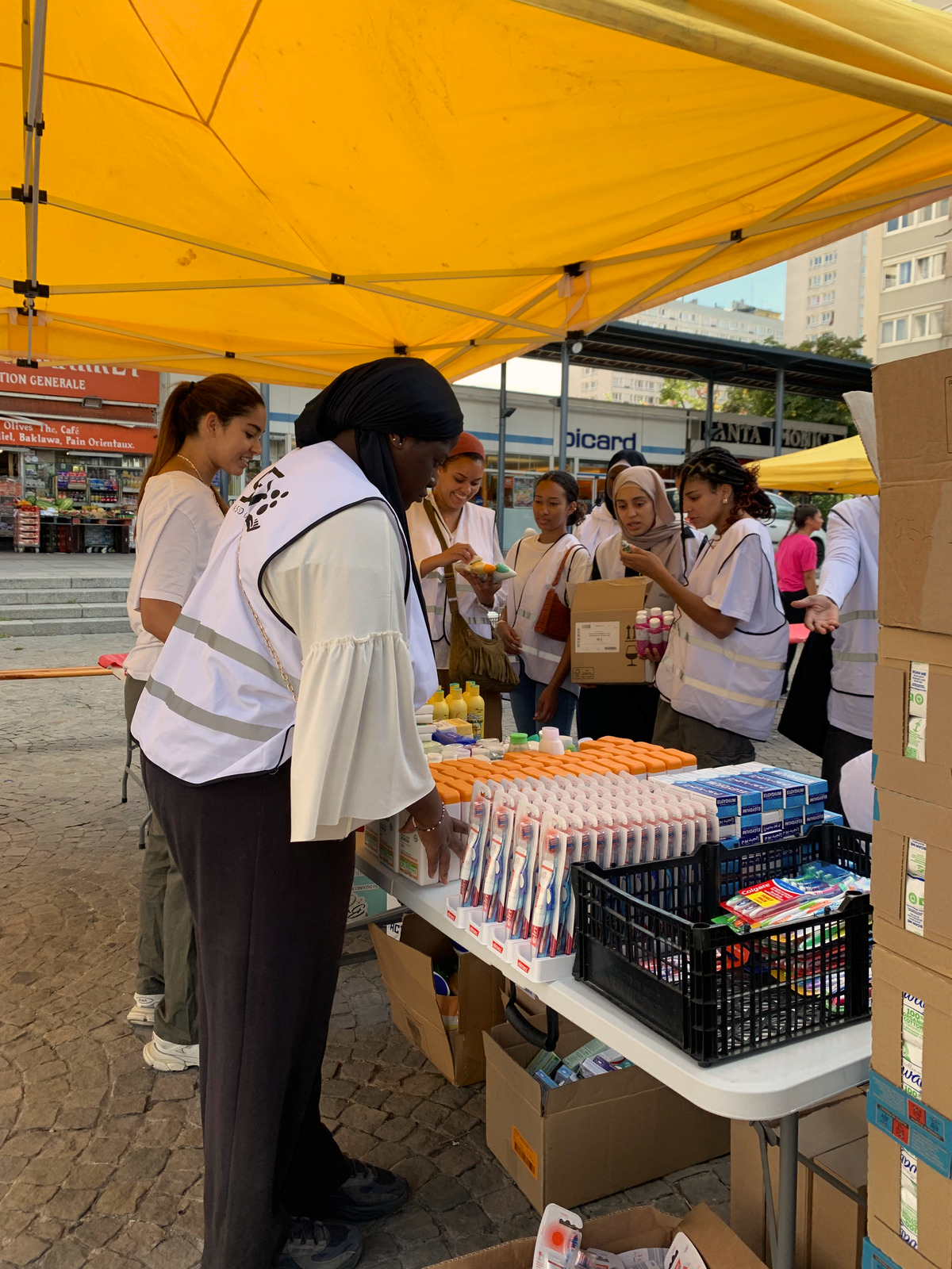 Organisation de marchés pour les étudiants et les sans-abri, avec des événements tels que Sois Frais pour la Rentrée, offrant des produits d'hygiène gratuits